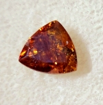 deep orange, 2.63 ct trillion, ~8.5 mm, VSI. Unsure of location, but I believe