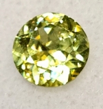2.62 ct round. 8.7mm, SI (very light veil). Pakistan. Most common and popular sphene color. Sphene is