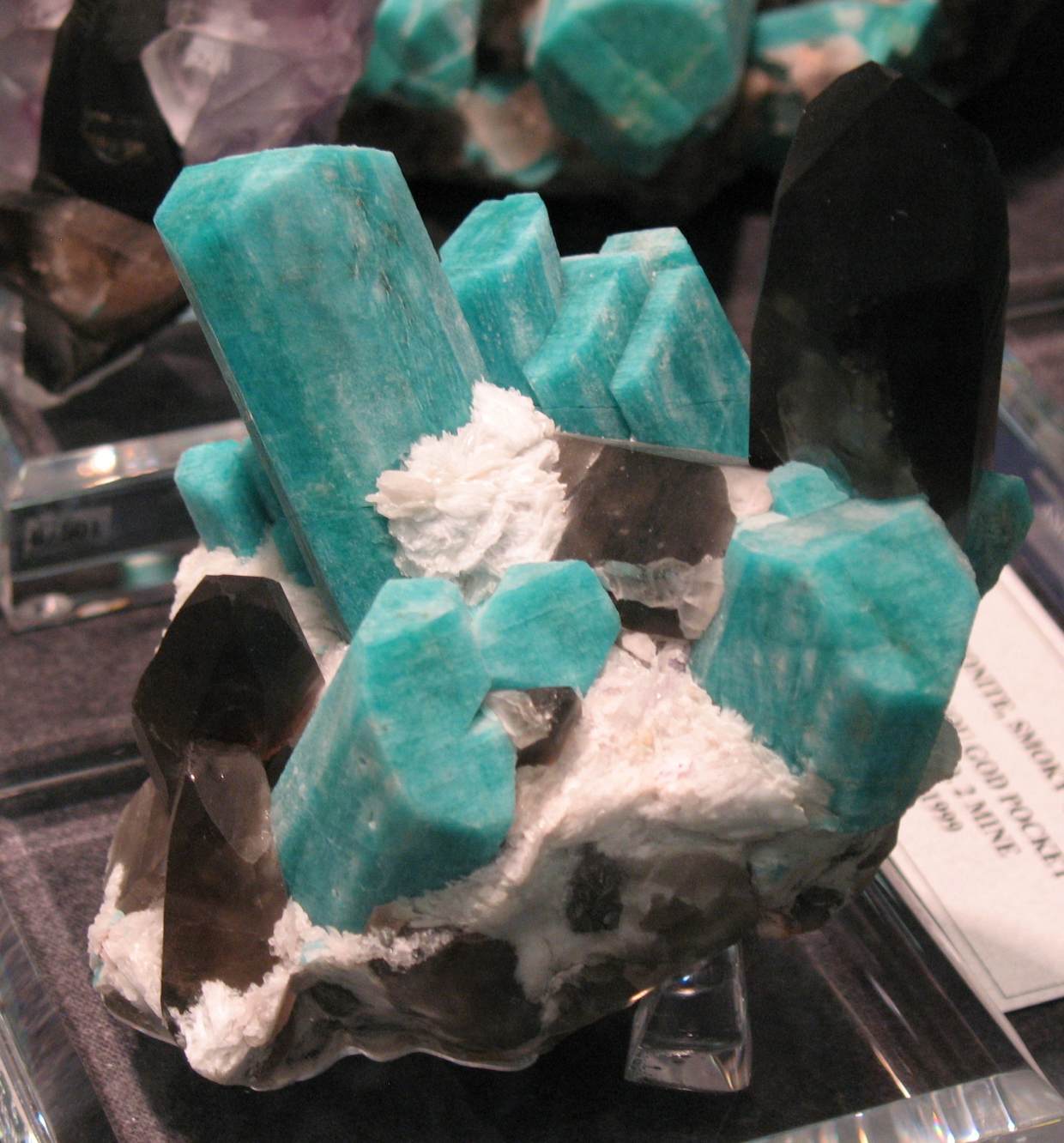 Another outstanding amazonite and smoky quartz cluster on cleavelandite, from the Crystal Peak area of Colorado. This area lies mostly north of the villages of Lake George and Florissant along Hwy 24. Much of the productive land is now private housing, while some is on national forest land. And most of the forest land is also under private claim, so access for the average rockhound is fairly limited. |