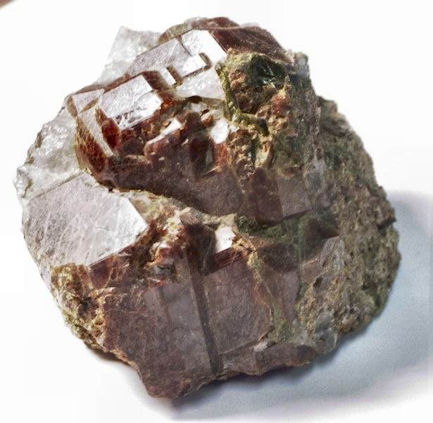 A nice large brownish grossular garnet specimen with minor epidote from a locality in Jefferson Country, near Denver, and mentioned in Richard Pearl's old Colorado Gem Trails and Mineral Guide. Many of these localities on the Front Range near urban areas are hunted out or are no longer accessible to the public. This specimen was recovered from a road cut by Howard Bachman (deceased) in the 1970's or early 80's. |