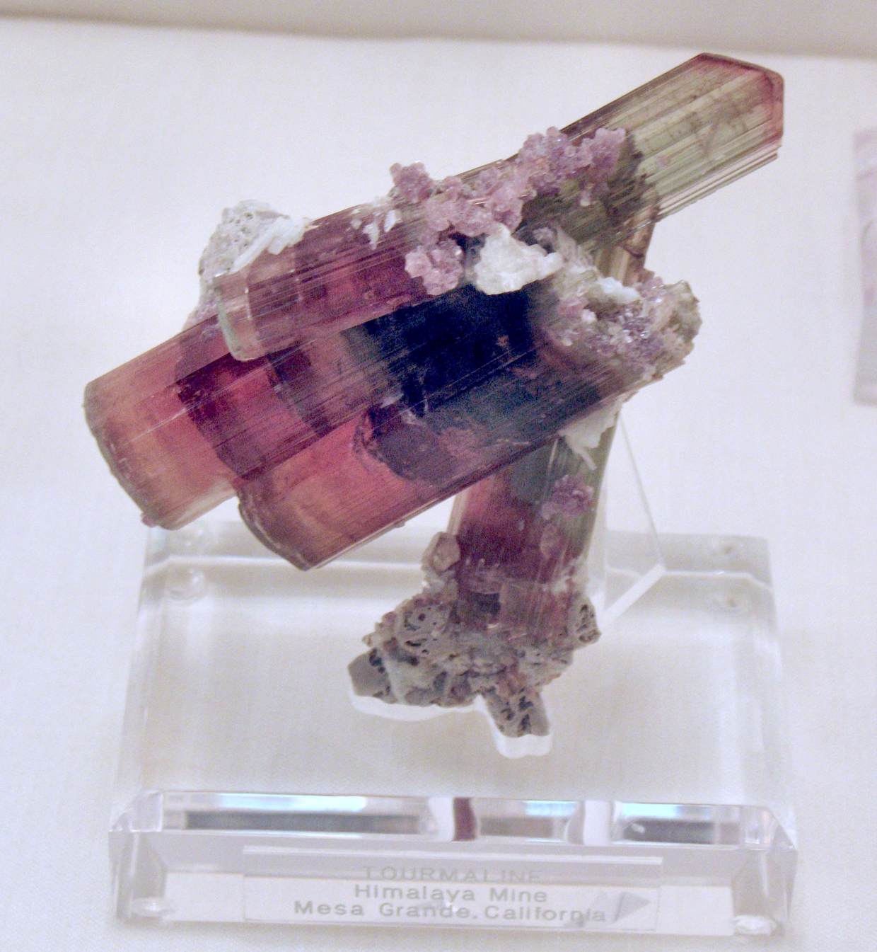 A fantastic cluster of multi-color tourmaline (elbaite) crystals from the world-class Himalaya Mine in Mesa Grande, California. This mine has produced more fine specimens than any other tourmaline mine in North America. |