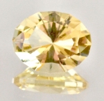 SOLD. Heliodor Beryl, Beautiful golden yellow oval brilliant, 1.67 ct, 7x9 mm, Brazil, EC. American cut. Would make a great ring stone, pendant, or ? Heliodor is the yellow variety of beryl related closely to aquamarine and likewise found in gem pegmatites. Good gem grade is actually more scarce than aquamarine. From the Greek word 'helios', or sun. No information is available on this piece regarding possible treatments. (Stock #HEYO-0167) $83.50 |