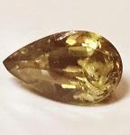 Sphene (Titanite). 1.58 ct teardrop, greenish yellow. Locality unknown. SI, inclusion along one edge. High brilliance and dispersion. Hardness 5+ (Stock #SPYT-058) $60.00 |