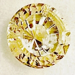 Scapolite, Tanzania. 2.47 ct, 16 main step round, 8.5 mm, SI. Good strong yellow. The stronger yellows are much harder to come by than the lighter yellows. Has a couple of inclusions along the girdle area. $25/ct. |