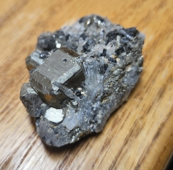 Small cluster of Pyrite, Quartz, and tennantite(?), from the original and world-famous Sweethome Mine near Alma, CO. Pyrite from there in