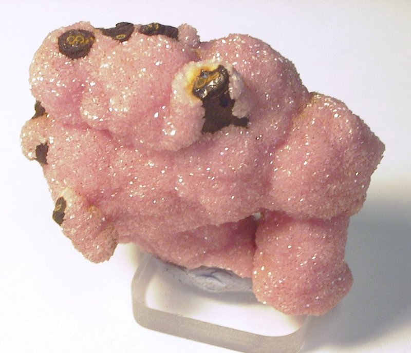 Drusy rhodochrosite from Mexico. Not gemmy, but very sparkly and attractive. On a limonite matrix. |