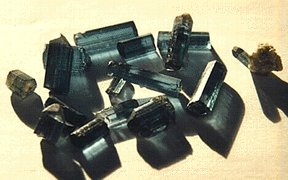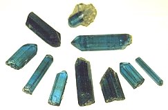Some nice indicolite specimens from the Berry. Note the pedion (pointed) terminations. |