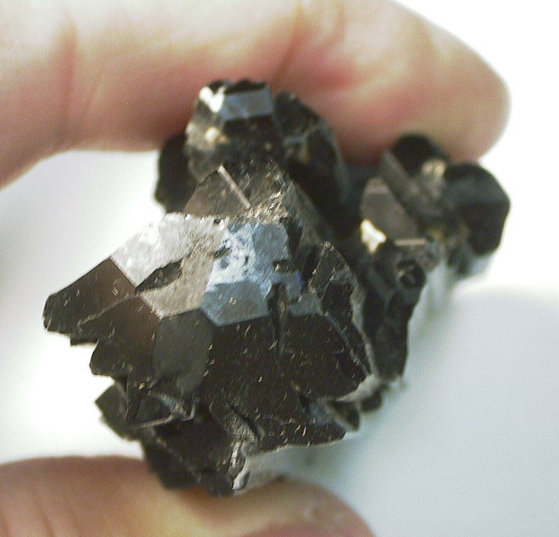 Black dravite tourmaline crystal from Brumado Bahia, Brazil. This larger xl grew from multiple seed xls, each being doubly-terminated. |