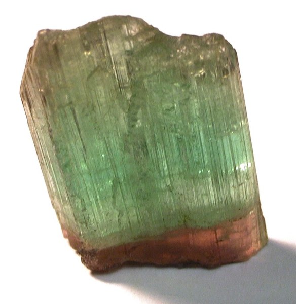 ![]() | A nice doubly-terminated double xl of green elbaite from the Otjuwa Mine, Namibia, Africa. Considerable specimen material showed up on the market a few years ago, but has pretty much all been snatched up into private collections. |