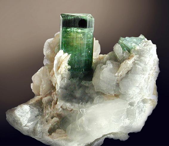 A very rare combination, elbaite tourmaline on sceptered quartz. From Minas Gerais, Brazil. Spomer collection. |