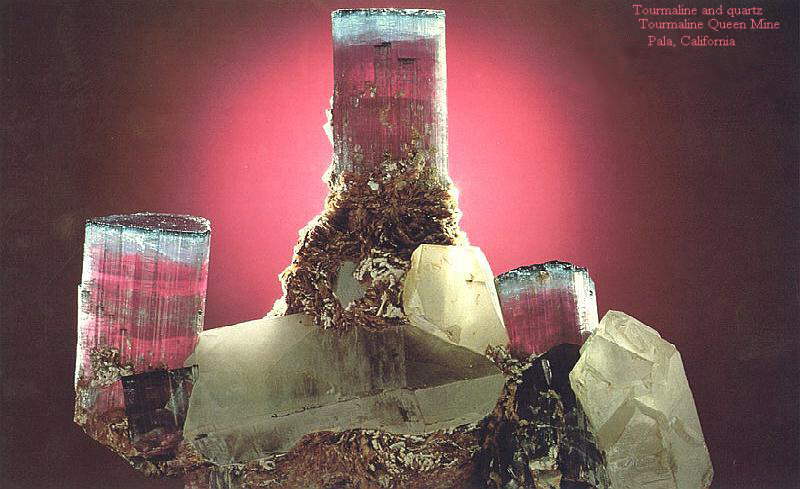 Some of the most beautiful tourmaline specimens ever discovered. From the Tourmaline Queen Mine, Pala, CA. The "Candelabra". |