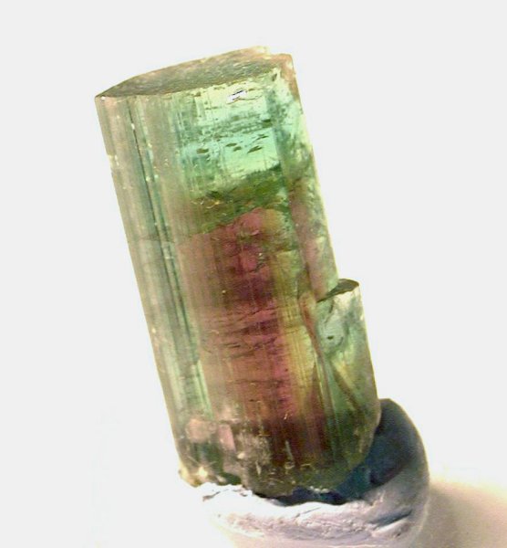 An example of the cool raspberry tourmalines with a blue cap that were collected at the Tourmaline Queen Mine, Pala, CA, circa 1972. This one was personally collected by famous mineral collector Dave Wilbur. |